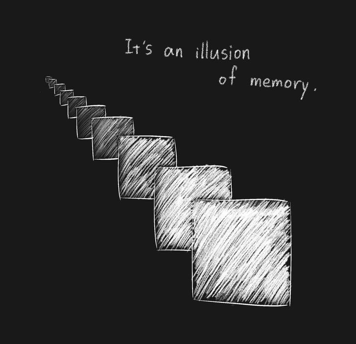 By using the mirror as a context, I used resemblance but broke contiguity and causation with the sudden change of the figure. the sudden temporal overlapping of two selves can hurt people's faith in the existence of self, at least for a moment. They may rebuild their faith soon after, but the moment of shock is powerful.